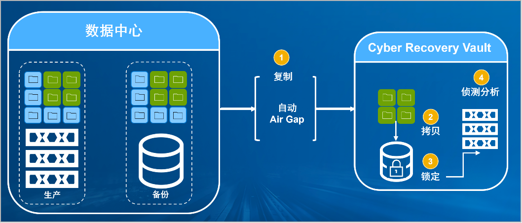 鱼丸游戏街机与森林舞会电玩城防勒索病毒方案将生产中心备份数据复制到Vault区,复制后网络自动断开实现弹性隔离。Vault区的数据快速拷贝,并对拷贝版本加锁(在锁定期数据不允许删除和修改)。Vault沙箱内对拷贝版本进行扫描分析,验证数据是否完好。