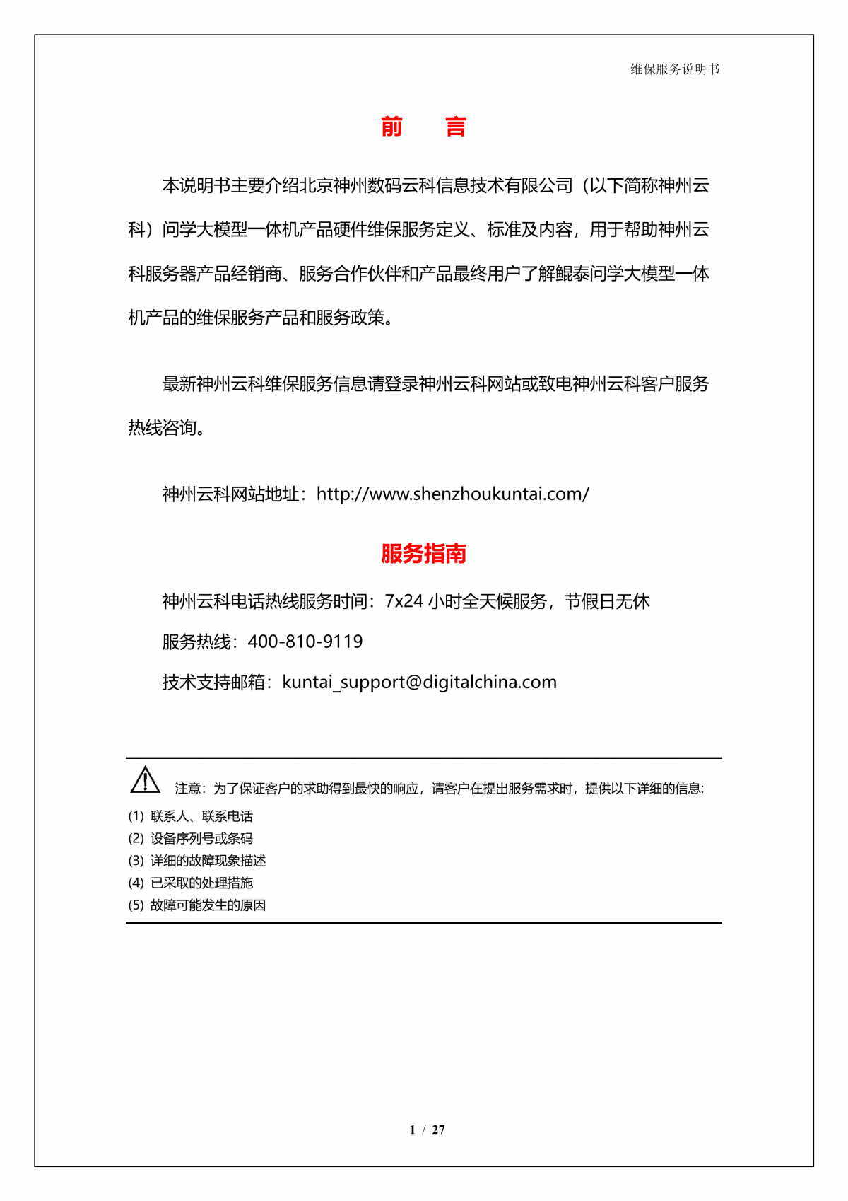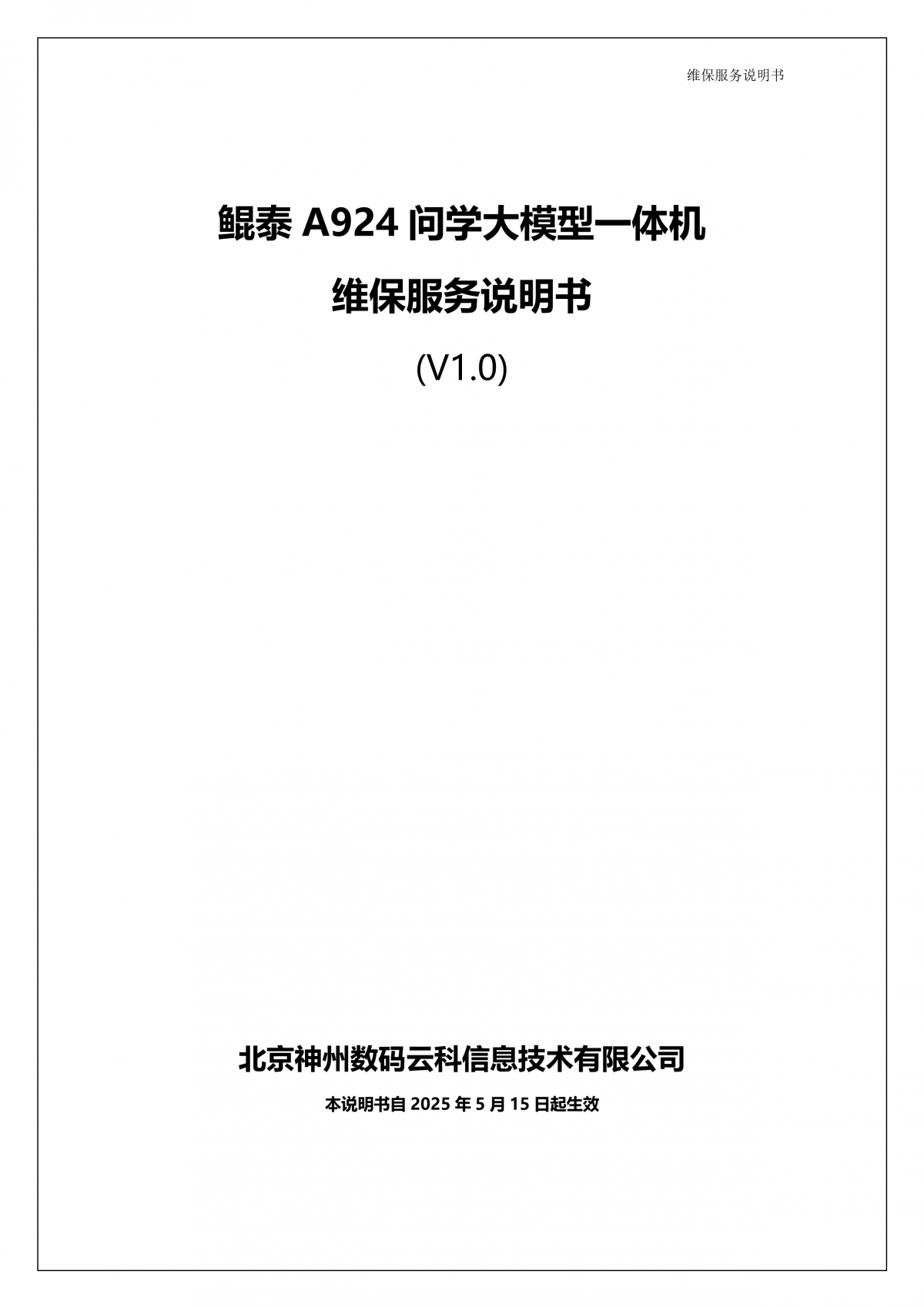 鱼丸游戏街机与森林舞会电玩城A924 问学大模型一体机维保服务说明书_V1.0