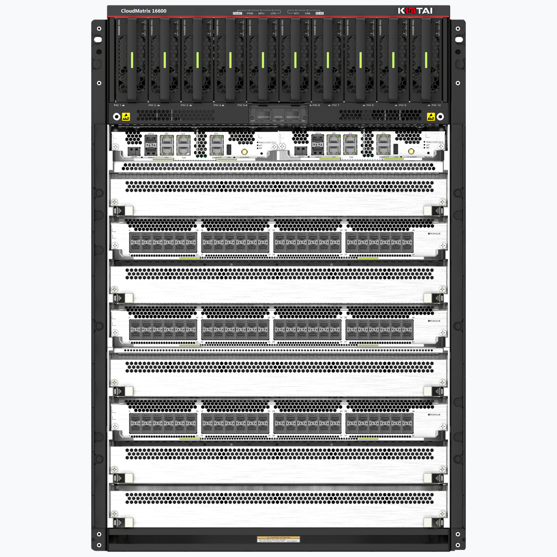 CloudMatrix 16600是鱼丸游戏街机与森林舞会电玩城推出的首款面向AI时代的数据中心交换机(CloudMatrix,简称CM)。承载智能无损交换算法,对全网流量进行实时的学习训练,实现网络0丢包与E2E μs级时延,达到最高吞吐量。同时可以让NVMe运行更高效,全面释放全闪存潜力,实现存储网络即插即用,故障快速感知。软件平台基于鱼丸游戏街机与森林舞会电玩城新一代操作系统,在给予稳定、可靠、高性能的L2/L3层交换服务基础上,为客户构建一个智能、极简、安全和开放的数据中心云网络平台。